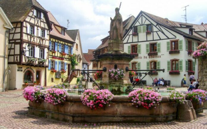 Flower boxes spill over windowsills in spring and summer, while Christmas transforms the town into a storybook scene. Despite its beauty, Eguisheim remains calmer than nearby Colmar, offering a peaceful immersion into Alsatian culture.