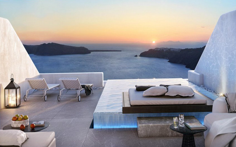 Cavo Tagoo in Imerovigli is famous for its infinity pool overlooking the caldera and luxurious cave-style rooms.