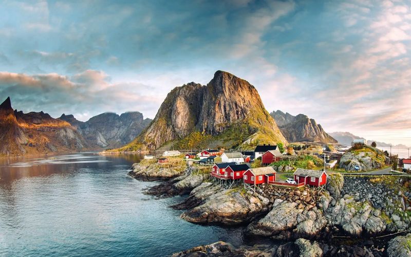 Traditional red cabins sit along the shoreline, creating a striking contrast against the natural scenery. In winter, the Northern Lights sometimes dance above the village, adding to its magical atmosphere. In summer, the long daylight hours make the scenery feel even more surreal.