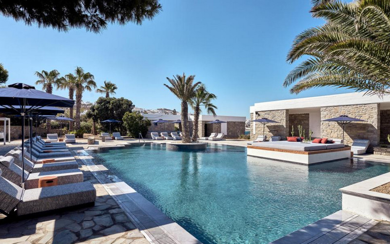 A mid-century design icon reborn, Mykonos Theoxenia sits steps from the island’s famous windmills and Little Venice. This boutique gem combines 1960s glamour with modern elegance, featuring geometric lines, retro furnishings, and a vibrant color palette.