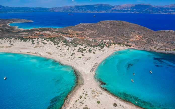 Situated off the southern coast of the Peloponnese, Simos Beach on Elafonisos Island is famed for its crystal-clear water and soft dunes. Divided into two crescent-shaped bays—Mikros and Megalos Simos—this beach offers shallow, translucent waters that blend turquoise and emerald tones.