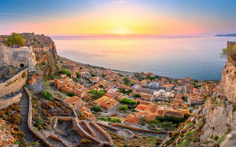 Replacing Rovinj: Monemvasia is Greece’s “hidden castle island,” a medieval fortress town carved into a massive rock and linked to the mainland by a narrow causeway.