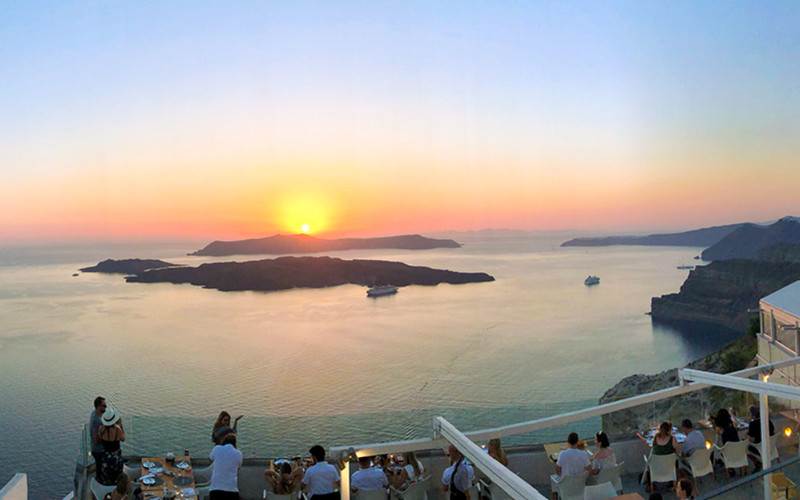 Wine and sunsets are a match made in heaven, and Santo Wines Winery offers both in abundance. Located near Pyrgos, the winery sits right on the edge of the caldera and provides terrace seating with unobstructed sunset views.