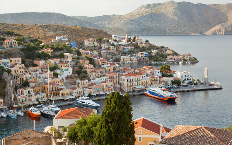 Symi, near Rhodes, offers a different kind of Greek beauty — elegant, colorful, and refined. The harbor of Gialos is one of the most picturesque in the Aegean, lined with pastel-hued neoclassical mansions that reflect the island’s maritime past.