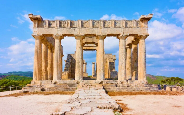 Situated on the island of Aegina, the Temple of Aphaia is a perfect example of harmony between architecture and nature. Built around 500 BC, it stands on a pine-covered hill with sweeping views of the Saronic Gulf.