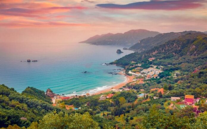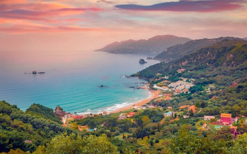 Perched high above Corfu’s west coast, Pelekas is famed for its panoramic views and dramatic sunsets. The village itself is a maze of narrow streets, traditional houses, and small squares where locals gather.