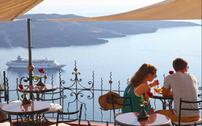 The rooftop terrace overlooks the caldera, offering prime sunset views with the sparkling sea below. Their creative cocktail menu blends local ingredients with global classics, and the vibe is both sophisticated and relaxed. It’s an excellent spot for couples seeking a romantic evening without the hustle of Oia.