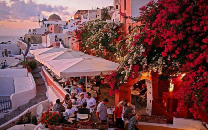 Located in Oia near the iconic castle ruins, Kastro is one of the few rooftop restaurants where you can dine while watching the most photographed sunset in the world.
