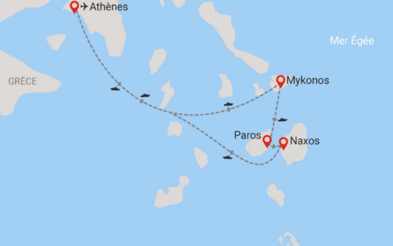 This classic route is perfect for travelers discovering the Cyclades for the first time. It balances vibrant energy with authentic island charm and natural beauty.