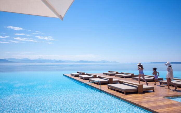 The resort features elegant infinity pools, private beach access, and a renowned spa offering holistic treatments. Guests particularly love the sunset views over the water, which create a serene and romantic atmosphere. Angsana Corfu is perfect for travelers seeking modern luxury combined with natural beauty.