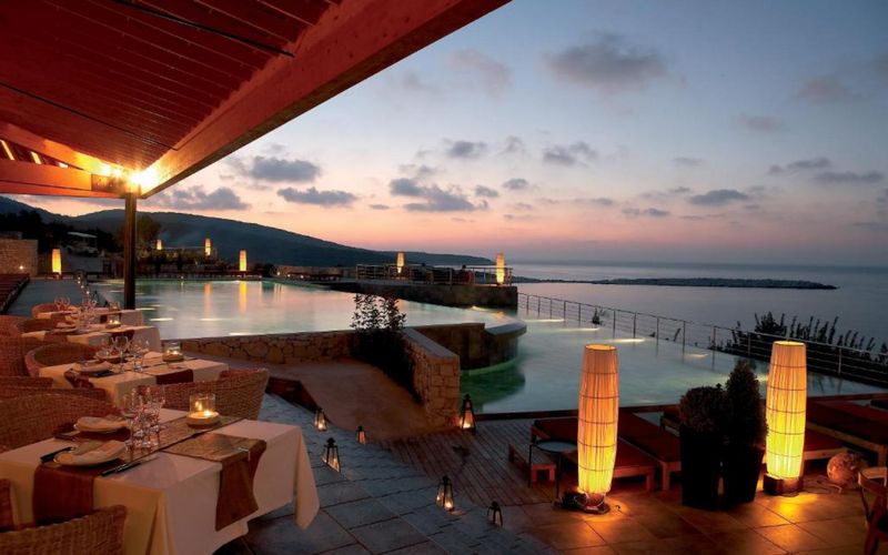 Located on the northern coast of Kefalonia, Emelisse Nature Resort offers a unique combination of forest scenery and sea views. The resort is surrounded by pine trees and rugged coastline, giving it a more natural and secluded luxury experience.