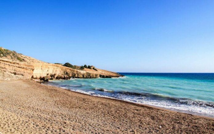 Located on Rhodes’s quieter southeastern coast, Fournoi Beach is a long, largely undeveloped stretch of sand and pebbles.
