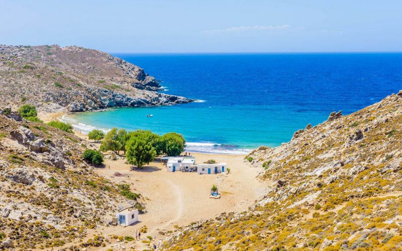Psili Ammos is one of the most beautiful sandy beaches in Patmos and feels wonderfully wild compared to the island’s more organized spots. Reached by a hike or a boat ride, it offers a long stretch of golden sand and open views of the sea.