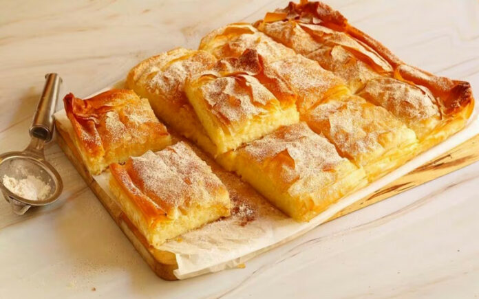 n Greece, bougatsa blurs the line between breakfast and dessert. This flaky pastry, originating from northern Greece (especially Thessaloniki), is filled with either sweet semolina custard or savory cheese. The sweet version is dusted with powdered sugar and cinnamon, making it a warm, comforting treat.