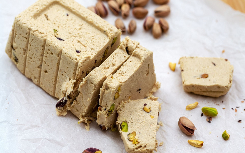 Halva is particularly popular during Lent, as it’s dairy-free and vegan-friendly. Despite its humble ingredients, it has a rich, nutty flavor and a grainy texture that pairs beautifully with coffee or tea. You might also encounter tahini halva, made from sesame paste, which is slightly denser and often marbled with cocoa or nuts.