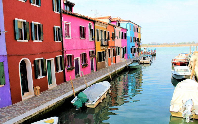 Some places look like they were painted rather than built — and Burano is one of them. Every home on this tiny Venetian island is painted in a bold, bright hue: lemon yellows, emerald greens, hot pinks, cobalt blues.